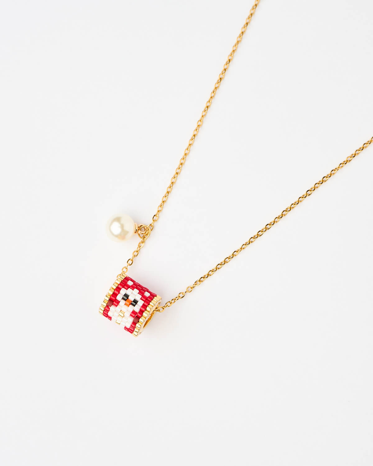 Το κολιέ Miyuki με τον Χιονάνθρωπο σε σχήμα Σωλήνα φέρνει χαρούμενη χειμωνιάτικη μαγεία σε κάθε συλλογή κοσμημάτων. Ο έντονος συνδυασμός κόκκινου, λευκού και χρυσού δημιουργεί μια χαρούμενη εμφάνιση που ταιριάζει τόσο σε εορταστικά ρούχα όσο και σε καθημερινά στυλ. Επειδή η χάντρα χιονάνθρωπου προσθέτει μια παιχνιδιάρικη πινελιά, το κολιέ φωτίζει αμέσως την εμφάνισή σας και εισάγει μια αίσθηση διασκέδασης. Ο ζωηρός χαρακτήρας του αντανακλά επίσης τον δημιουργικό κόσμο του The Gem Stories.