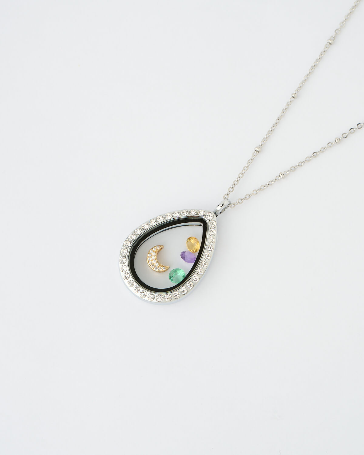 • Colorful Moon TearDrop Memory Locket Necklace by The Gem Stories