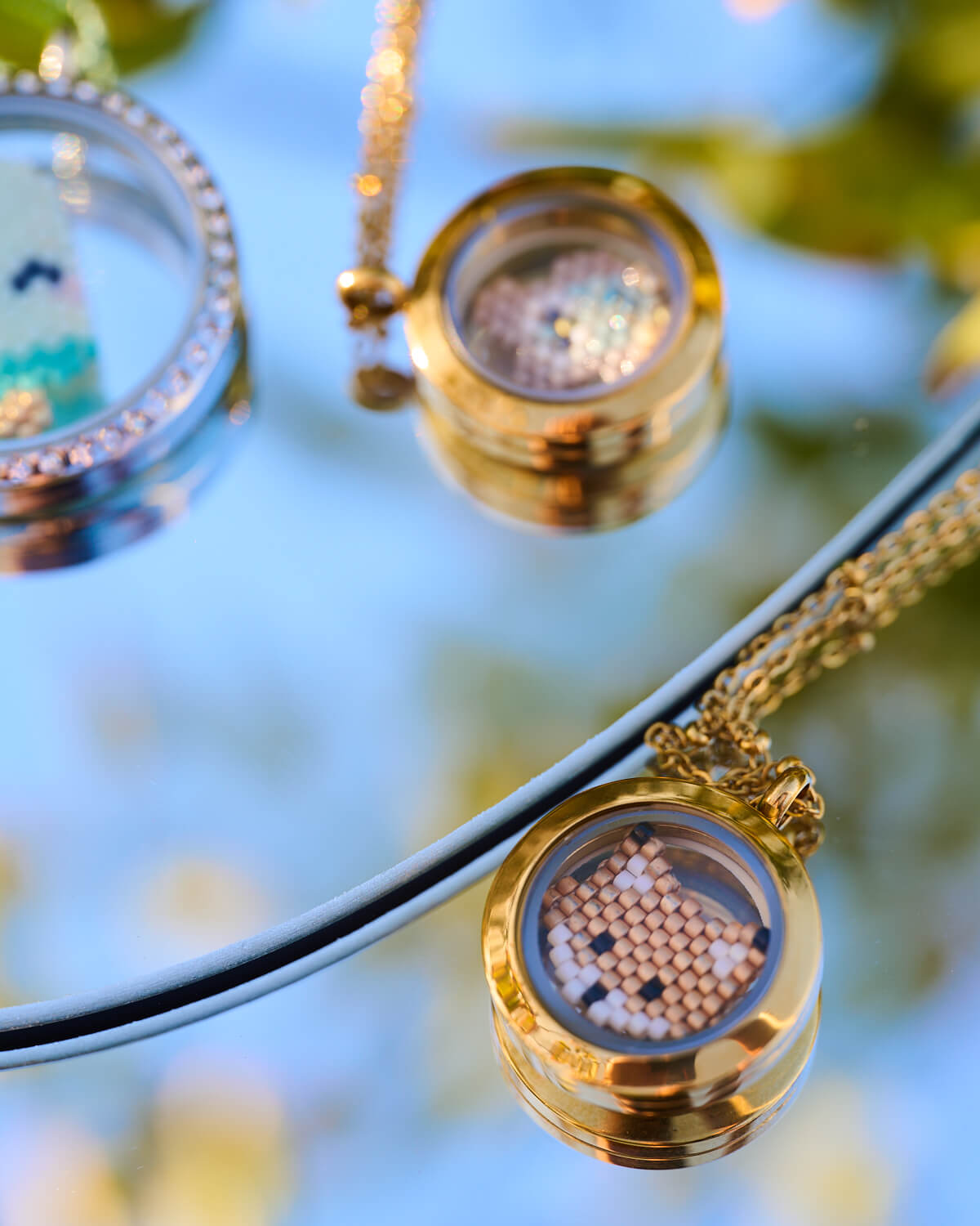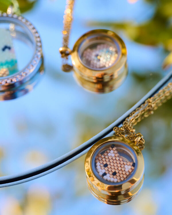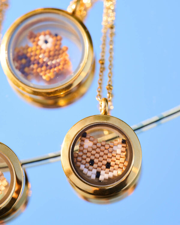 Encased in a gold stainless-steel memory locket, the intricate Miyuki beadwork is securely protected by a transparent crystal case. This polished frame allows light to dance through the design, showcasing the artistry inside while adding a touch of modern sophistication. Paired with a refined gold chain, the Golden Fox Necklace effortlessly transitions from day to night, making it a perfect accessory for both casual and elegant outfits.
