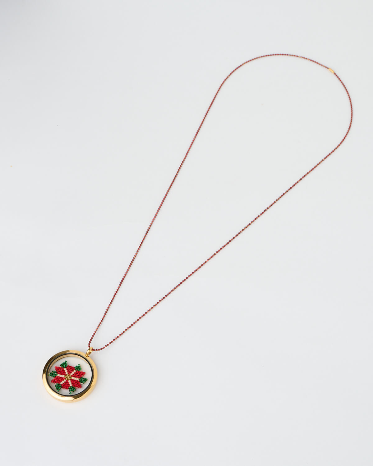 • Poinsettia Miyuki memory locket necklace by The Gem Stories
