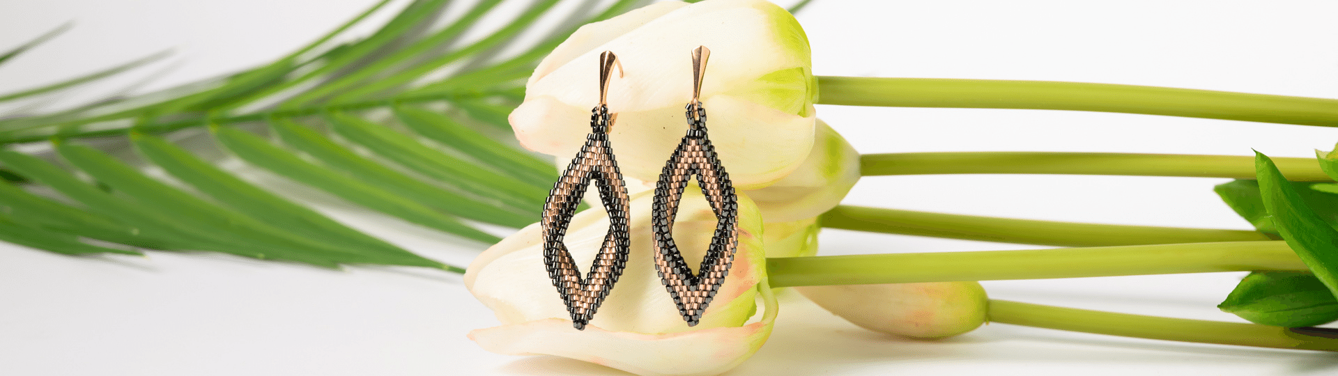 Miyuki Peyote Earrings – Gunmetal and Gold