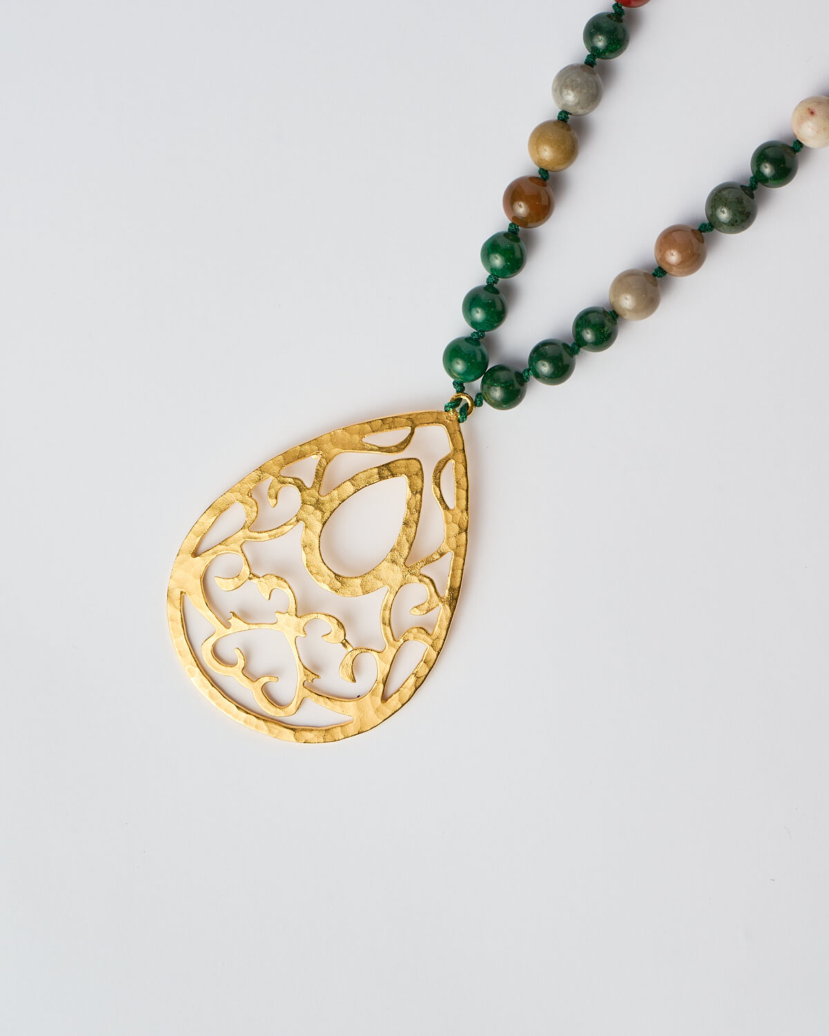 • Handcrafted openwork teardrop pendant, 24k gold plated